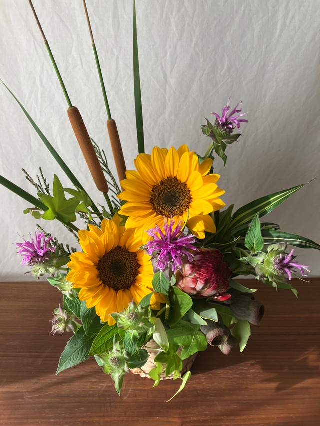 ストリートの花屋sunth sunth(サンスサンス)が作る、夏のお花のアレンジメントです。 大きすぎず飾りやすいサイズで、ギフトにも選んでいただくことが多い価格帯のアレンジメントです。 特にご希望がなければ、状態の良いお花をご用意しますが、お色味や使いたいお花など、ご希望がありましたらなんでもご相談ください。 写真はこれまでの作品です。 花器はサンスのオススメのもので、写真とは異なる場合がございます。 サイズは使うお花や、デザイン、花器によって変わりますが 高さ 約25-30cm 横幅 約20-23cm 奥行き 約15-17cm 程度です。 (飾る場所の都合のよいサイズがある場合はお知らせください。) ギフト用orご自宅用 ご希望のお色、雰囲気などお気軽にご相談ください。 (イメージ写真があればメールに画像を送ってください。[email protected]) こちらは受注生産になりますので、お届けまで1週間をきりましたらキャンセルはお受けしておりません。 生花の特性上、関西からの発送で翌々日に到着となる地域にはお送りできません。 (北海道、青森県、秋田県と岩手県、宮城県、山形県、福島県の一部。 沖縄県と伊豆諸島、小笠原諸島、隠岐郡などの離島。) ご注文いただきましてもキャンセルとなるため、ご不安がありましたら配送可能か調べますので、お送り先を事前にご相談ください。 専用の箱に入れての配送になります。 配送はヤマトさんを利用します。 (クール便はお花にとって寒すぎる可能性があり凍結、 温度差による結露からの蒸れなど 心配がありますので使用しておりません。) その他、ご要望に合わせた対応をしたいと思っておりますので、何かありましたらお気軽にご相談ください。 Instagram https://www.instagram.com/sunth_sunth/