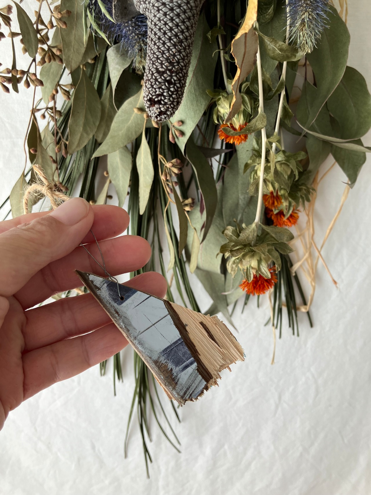 ユーカリ、ロベを合わせたドライフラワーのスワッグです。