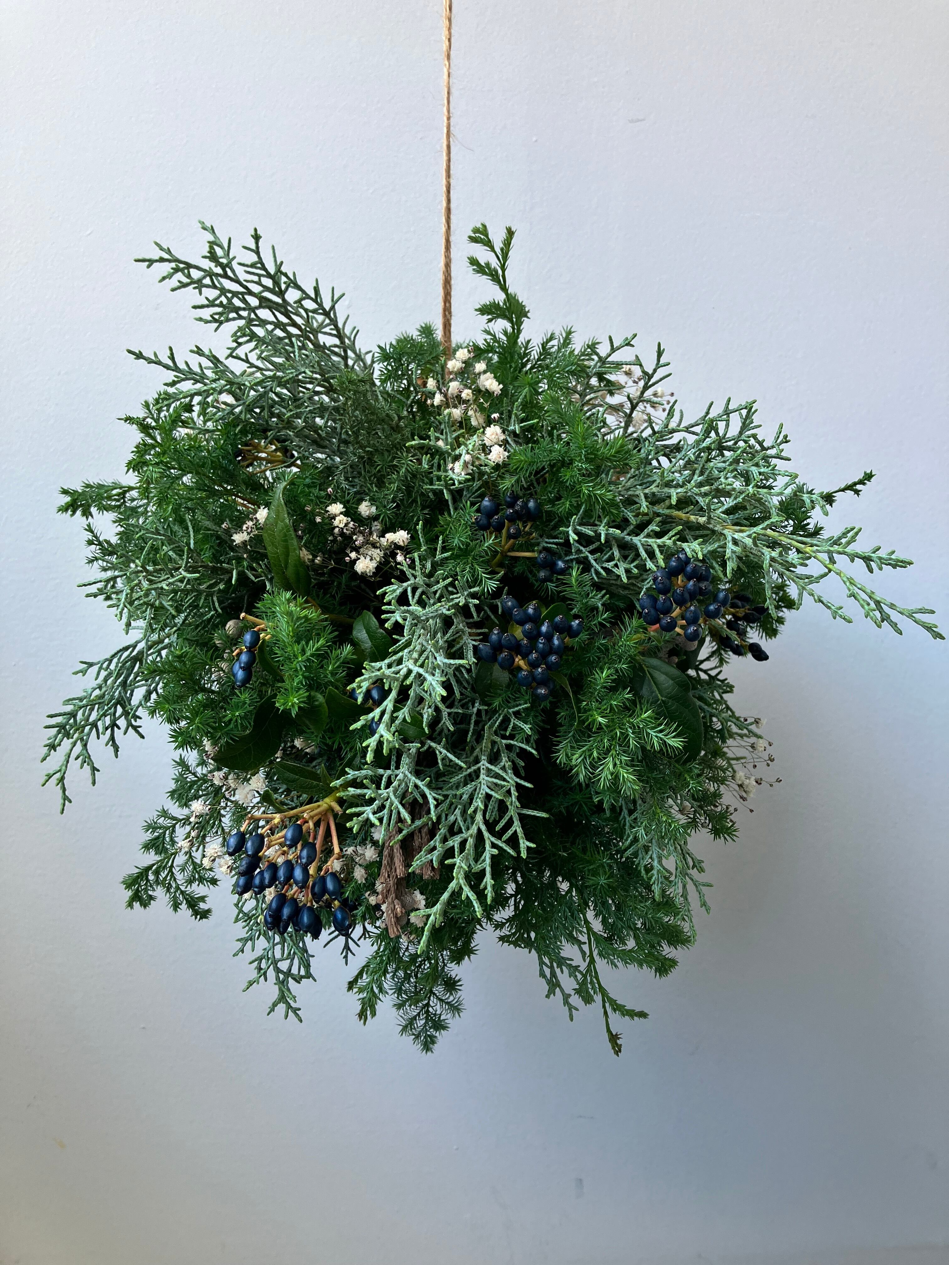 フレッシュな状態でお作りし、ドライへと変化していく様子を楽しんでいただけるボールスワッグです。